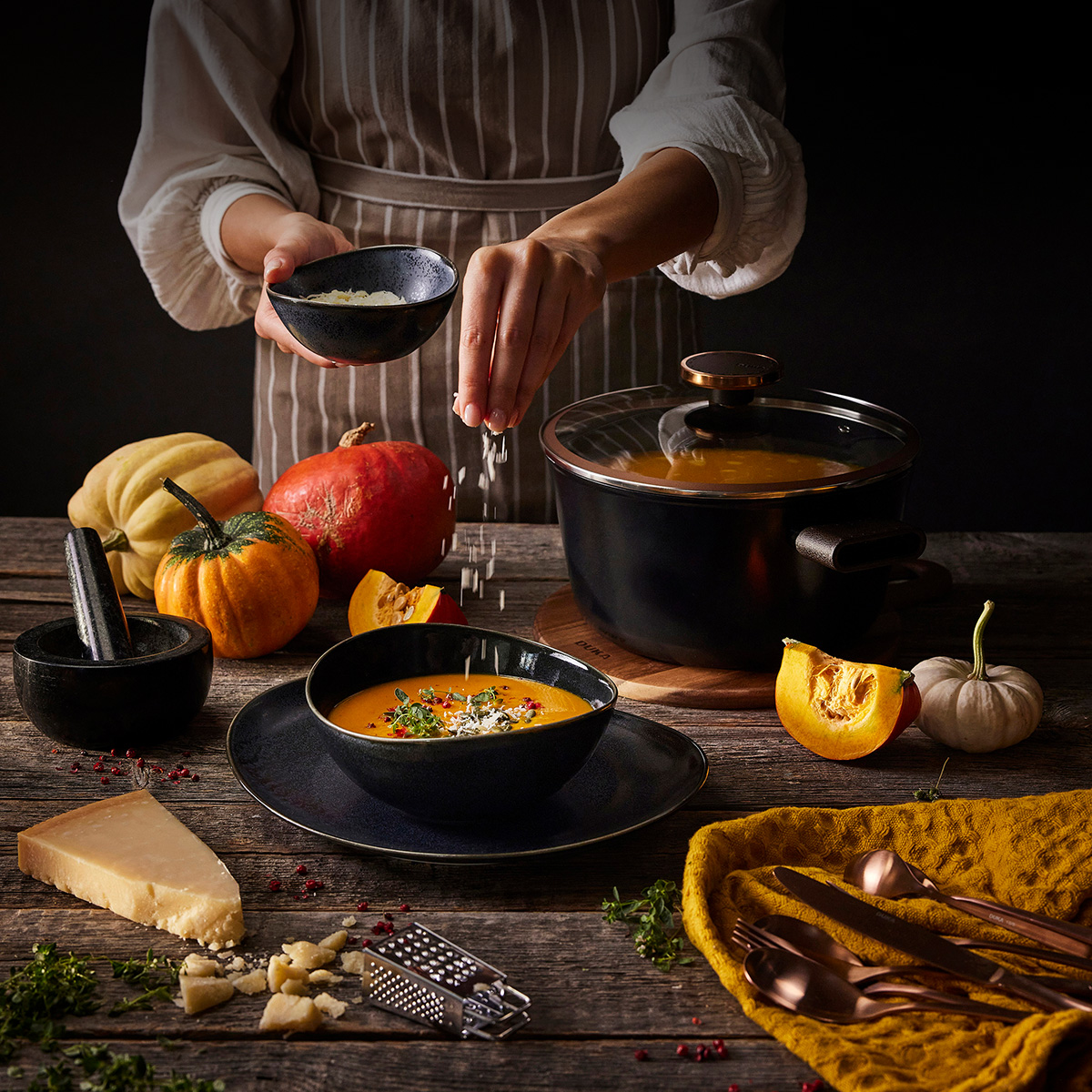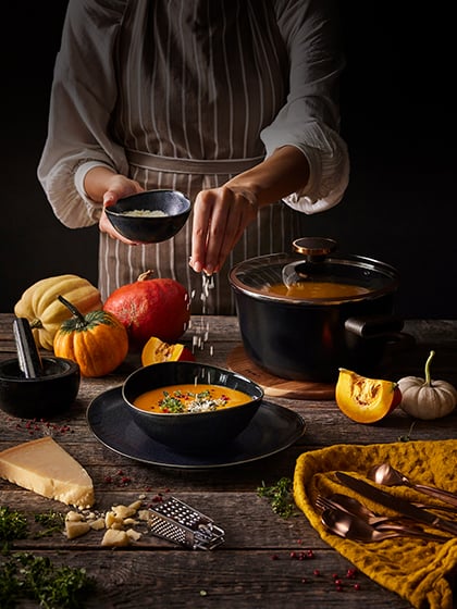 - Podawaj w miseczkach, oprósz startym parmezanem oraz pestkami dyni.